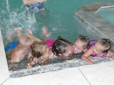 I taught swimming lessons this week for some of my friends kids and Sophie. I couldn't believe that after 12 years of teaching lessons that I was finally teaching my own daughter. I was a little bugged because she wouldn't do anything for me. I thought she wasn't learning anything until today when she decided that she wanted to do everything that the other kids were doing. She is a stinker. I am so proud of the kids because they did such a great job and learned so much.